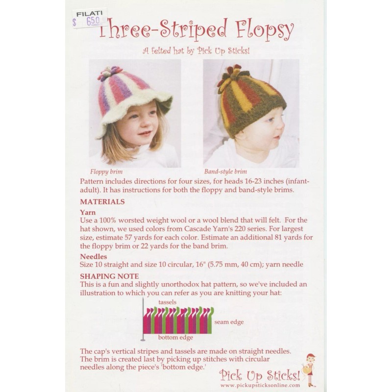 Pick Up Sticks KNITTING PATTERN Three-Striped Flopsy A felted hat Baby Child 1-4
