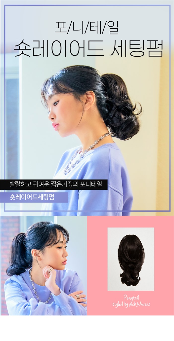 [픽앤웨어] 세팅펌 포니테일 숏기장 레이어드컷 가발 투톤브라운