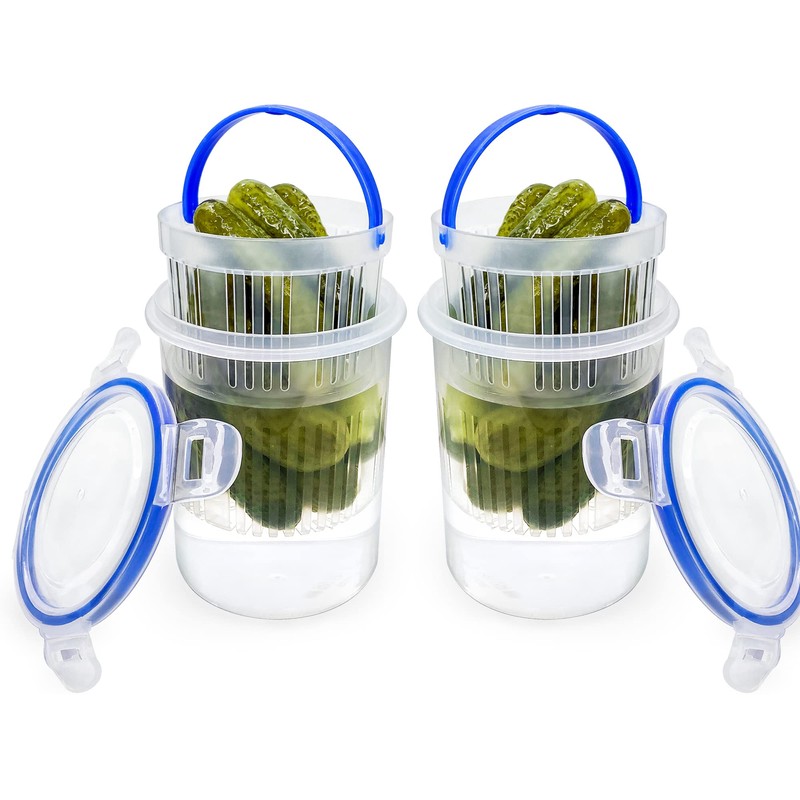 Pickle Jar 24oz 2Pack Pickle container with strainer Pickle Holder Keeper Lifter, pickle storage container pickle strainer,Flip Jar with Leak Proof and Lock It Lid