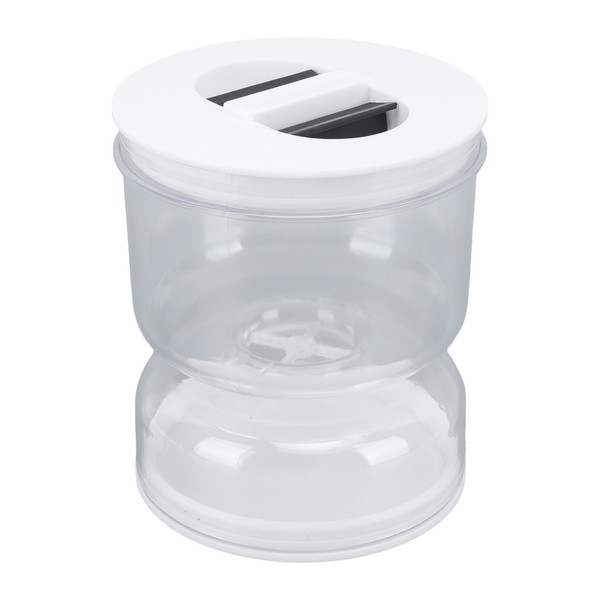 1、EASY ACCESS: Say goodbye to the hassle of getting pickled vegetables and olives from the jar. This pickle container uses a bell shaped jar to separate them from the brine in one easy step, with a large opening for effortless access. Perfect for pantry, utensil room, and storage area convenience. 2、HOURGLASS DESIGN AND LID: This kitchen accessory aims to separate liquids from food. The top features a large container that connects to the bottom container through a narrow opening. This design allows the liquid to flow to the bottom while the food stays on top. The lid is airtight, so it won't spill when stored upside down. 3、VERSATILE USE: Not just for pickles. This jar can be used with any liquid packed food. Pour canned pears, olives, or peaches on top, let the juices flow out, and enjoy easy consumption. This tool is a wet and dry separator that caters to many of your storage and separation needs. 4、PREMIUM CONSTRUCTION: Made from durable ABS materials, this pickle jar ensures long lasting use. It is dishwasher safe and easy to clean, making it a reliable addition to your kitchen. 5、USEFUL SALTWATER: Don't pour out the saltwater from your pickles. Keep it in this container, stored in the refrigerator. Reuse the saltwater to make more pickles or add flavor to any meal.