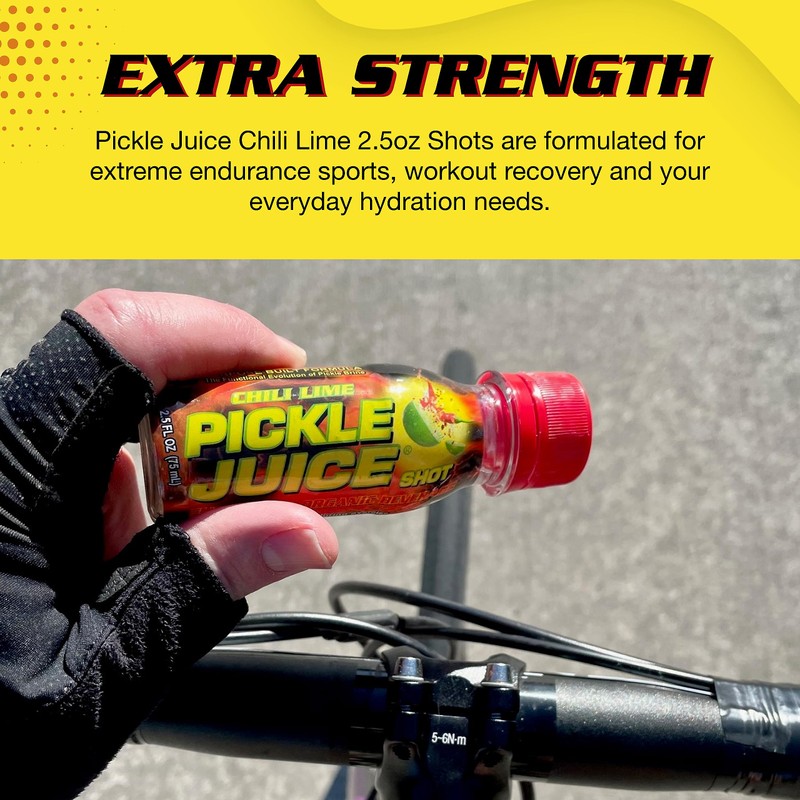 Pickle Juice Sports Drink Shots, Extra Strength, Chili Lime - Relieves Cramps Fast - Electrolyte Pickle Juice Shots for Day & Night Time Cramp Relief - Pickle Juice for Leg Cramps - 2.5 oz, 12 Pack