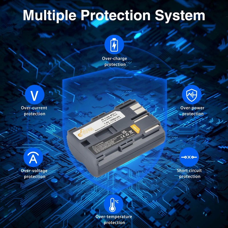 - Safety Protection: BP-511a battery and charger built with multiple circuit protection (over-charging, short-circuit, high-temperature, and surge protection), and high-quality, fire-resistant construction