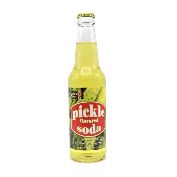 Rocket Fizz Lester's Fixins Pickle Soda Flavor | Cane Sugar | Craft Soda Pop Drinks | 12 oz in Glass Bottle (Single Bottle)