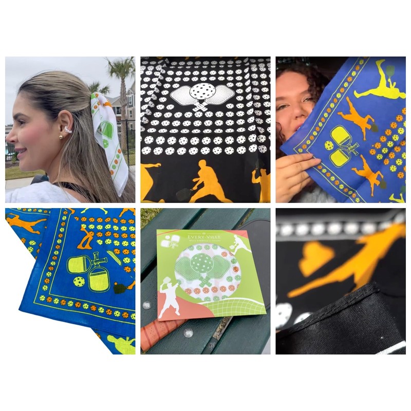 Pickleball Bandana for Men & Women - 100% Soft Cotton, 55x55 cms, Blue Orange Yellow, Double-Sided Print, 1 Pack, Gift Ready - Funny Pickleball Accessory or Clothing Gift