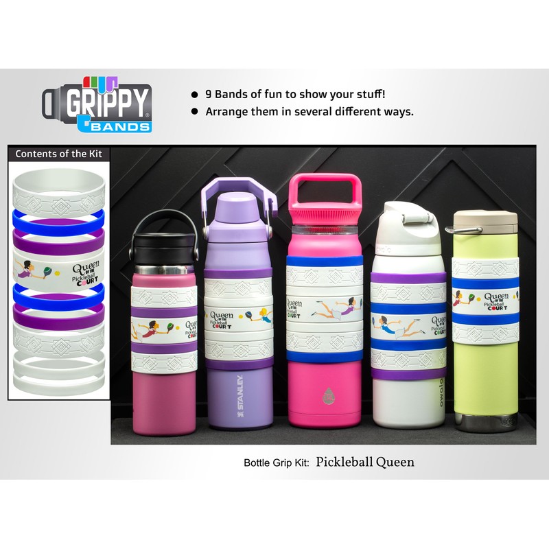 Pickleball Queen Water Bottle Grip Kit: Regular - 9 Bands of Bottle Bling, Style, & Protection.