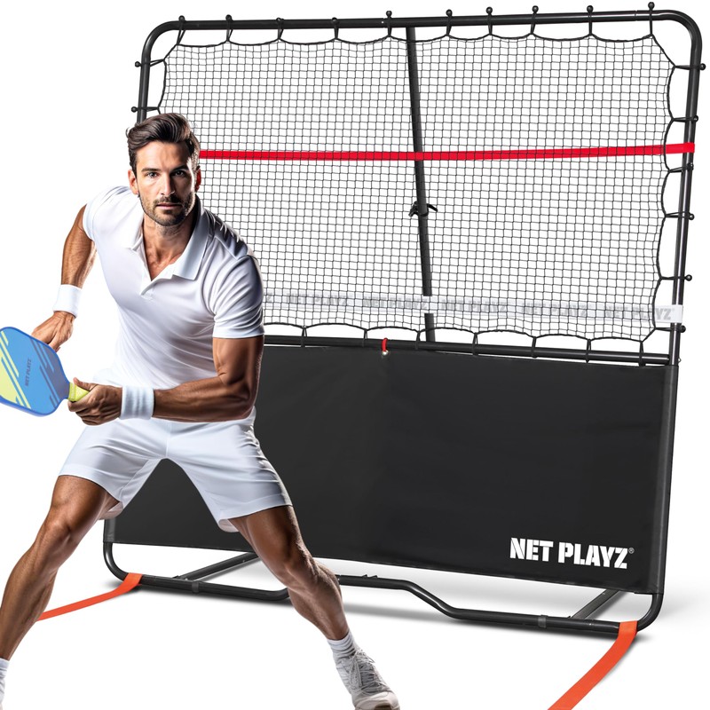 - Dominate the Court - Elevate your pickleball game with this 6x6ft rebounder. Train like a pro with the fixed white webbing for simulating 3ft net height, adjustable red webbing hitting zone for precision, and removable orange strip 7ft non-volley zone. Quick and easy setup with bungee cords gets you practicing in minutes.