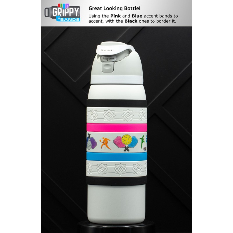 Pickleball Water Bottle Grip Kit - WHITE: Regular - 9 Bands for Superior Grip, Style, & Protection.