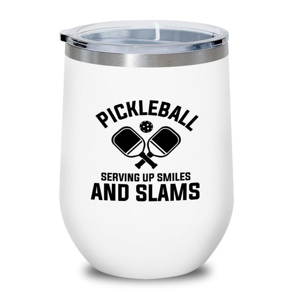 Pickleball White Edition Wine Tumbler 12oz - Serving up smiles - Ball Game pop tennis rackets netball handlball