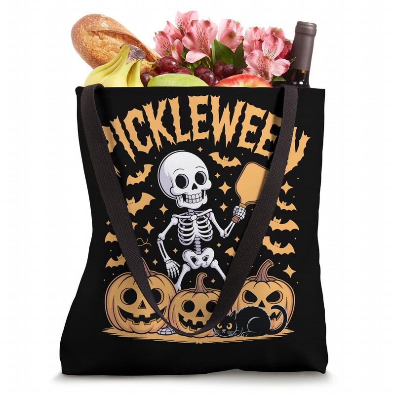 Pickleween Pickleball Player Funny Halloween Skeleton Tote Bag