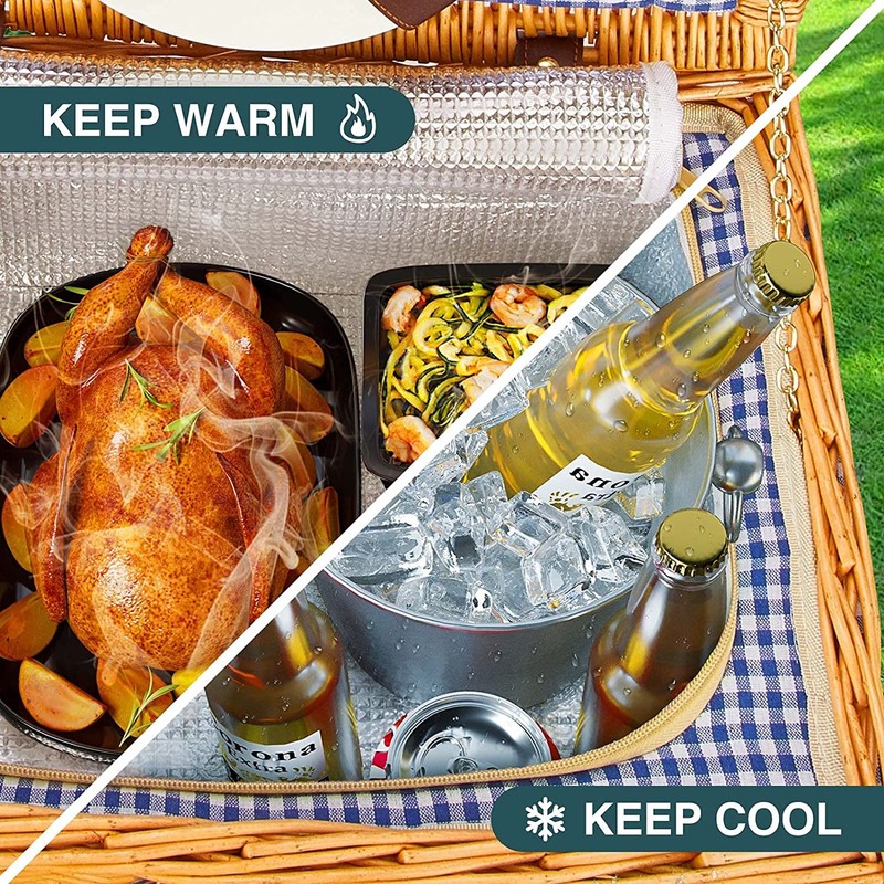 - 🍓Unique Insulated Compartment: picnic basket comes with an insulated compartment. you can use it to create a hot or cold area inside your basket. if you like to bring mayonnaise or meat-based dishes on your trips then an insulated picnic basket could be ideal for you