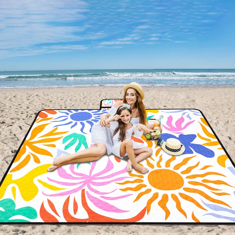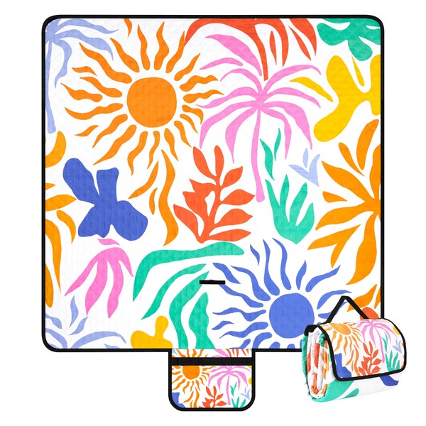 • STYLISH DESIGN Eye-catching patterns make this foldable beach blanket stand out at festivals or picnics. The lightweight design with carry handle fits in any backpack - ideal for on the go!