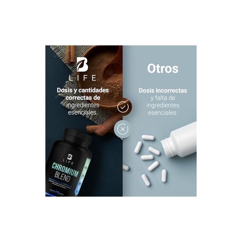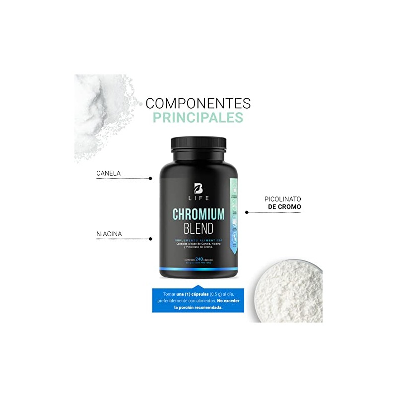 Picolinato de Cromo de 240 Cpsulas Con Canela y Niacina. Ingredientes naturales. Chromium Blend B Life.