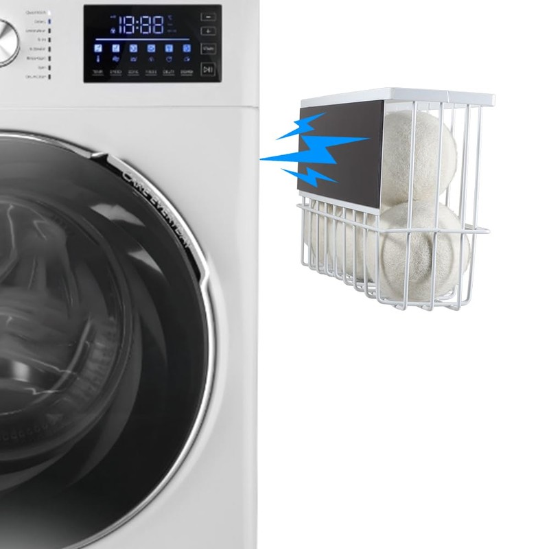 Picowe Large Dryer Ball Organizer Magnetic Storage Bin, Magnetic Basket Dryer Ball Holder for Laundry Room Organization and Storage to Hold 6 Dryer Balls, Without Balls (White, L )