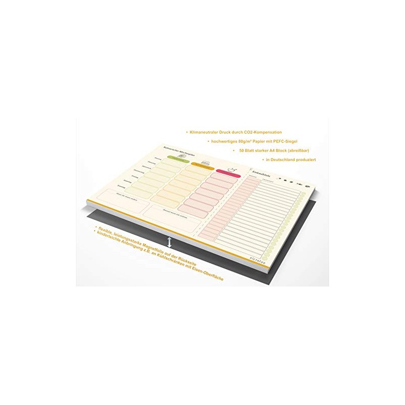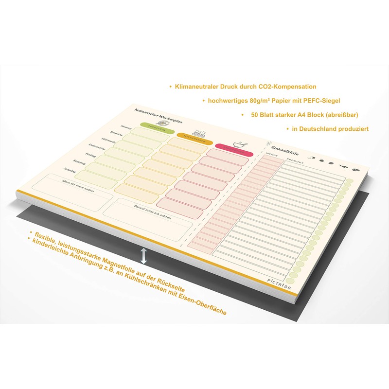 - Practical assembly: the PICTALOO meal planner makes it easy for you to create a clear menu weekly plan for the whole family and write the necessary products directly on the shopping list.