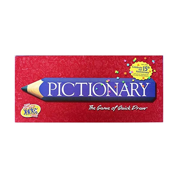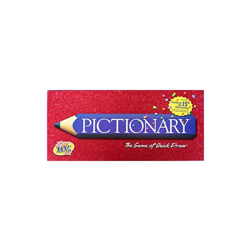 Pictionary is the classic party game that plays like charades, only on paper. Instead of acting, you sketch clues to your teammates. But you don't have to be an artist to play. All that's needed is a little imagination and a fast pencil. This updated version contains the best words from previous Pictionary editions plus over 1,000 fun new words and expressions! For 3 or more players. Game includes: game board, die, timer, 324 cards (3,200 words), 4 pencils, 4 playing pieces, 4 pads of paper, card tray and instructions. Color of parts may vary.