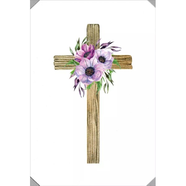 Pictura Simple Wood Cross with Purple Flowers Religious Easter Card