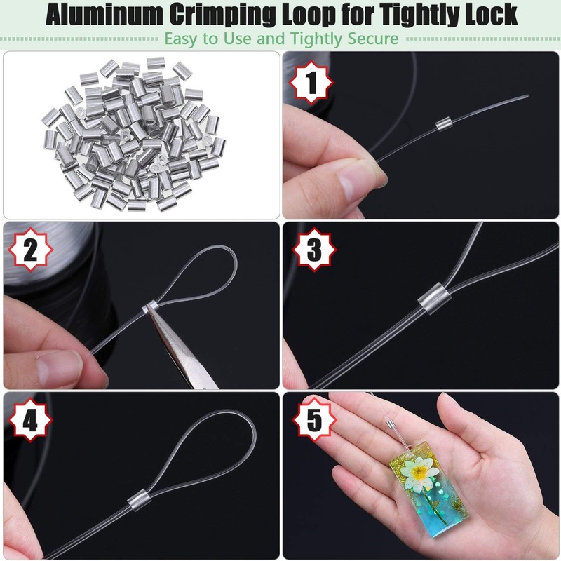 - What You Get – Acejoz fishing wire set comes with 1 roll of heavy duty picture hanging wire clear, and 100pcs aluminum crimping sleeve. Ideal for hanging decoration and crafts projects