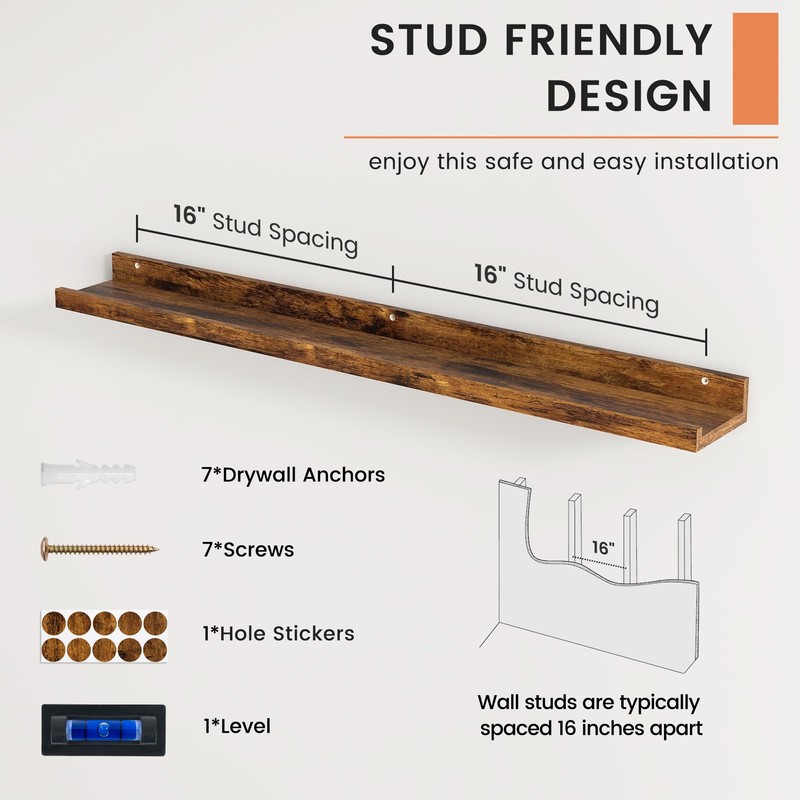 - Superior Quality: Each FLYJOE wood floating wall shelf is built with durability to give you a comfy use for years to come while its mounting hole is designed 21 inches apart for secure wall stud installation.