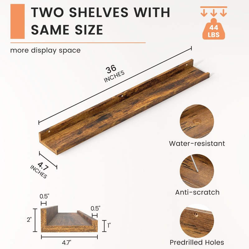- Picture Wall Collage Decor: If you have dozens of pictures but don't know how to display them, FLYJOE picture ledge shelves(especially large size) for wall are perfect for you! With our hanging shelves, store and display different types and size of photo frames in one place with no worries of falling off.
