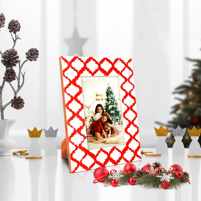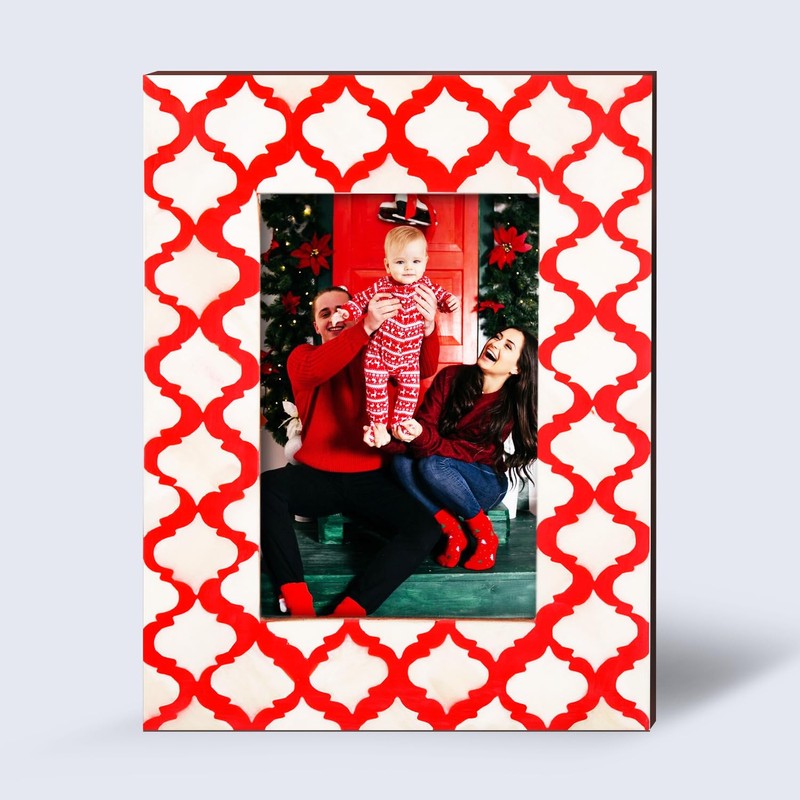 Picture Photo Frame Moorish Damask Moroccan Arts Inspired Handmade Naturals Bone Frames Photo Size 5"x7", White Red