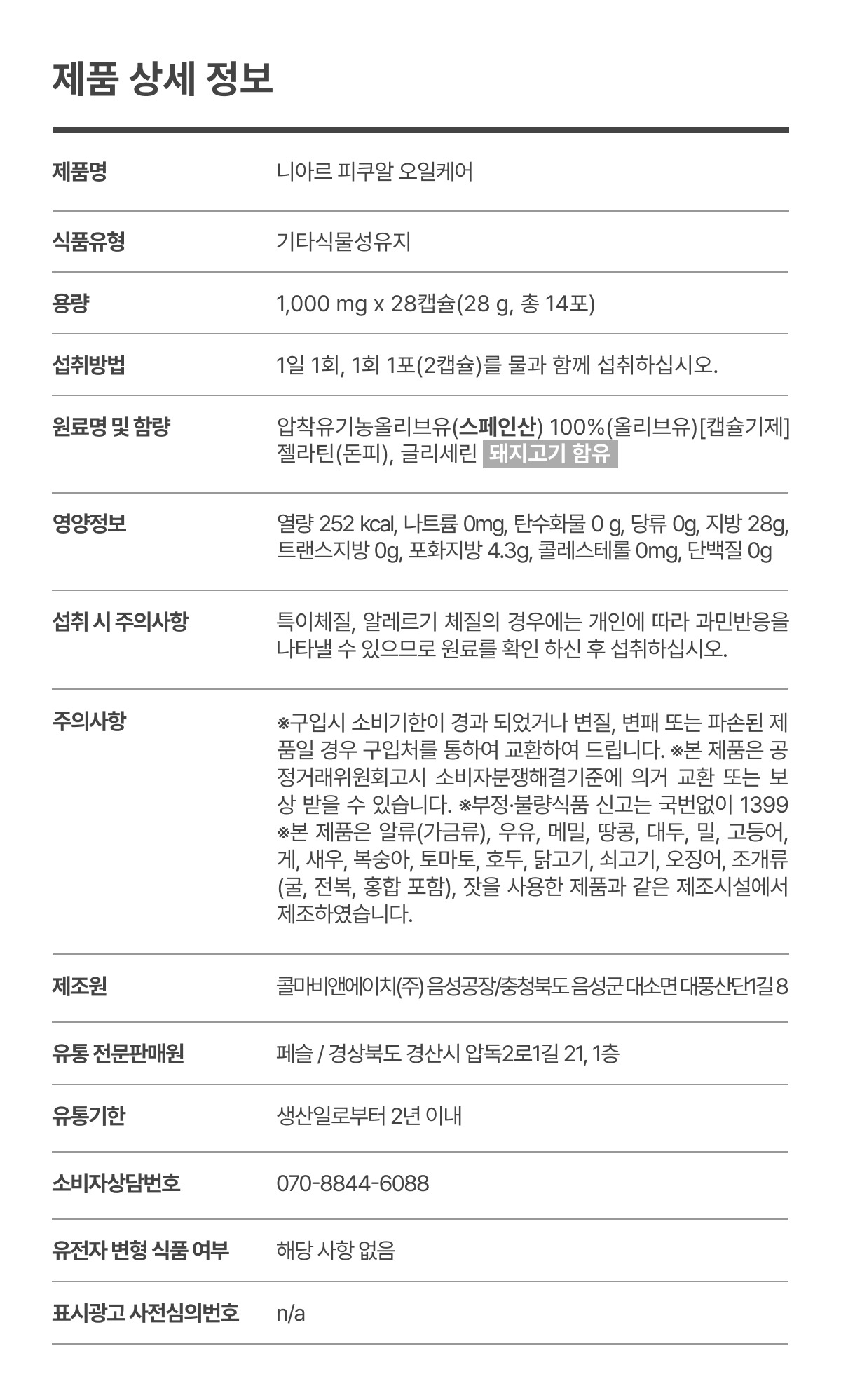 Picual Oil Care 2box (4 weeks worth) / 피쿠알 오일케어 2box (4주분)