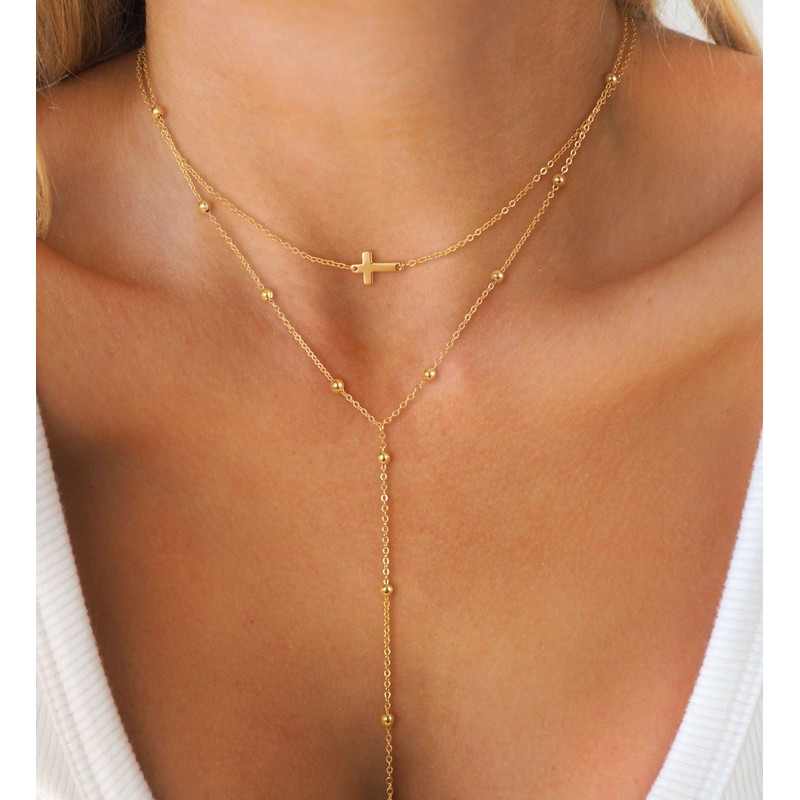 - Gold Stacking Y Necklace: Our gold cross necklace design is elegant and stylish, with double stacking and cross pendant design, this fashionable women's y necklace will add a touch of glamor to any of your outfits