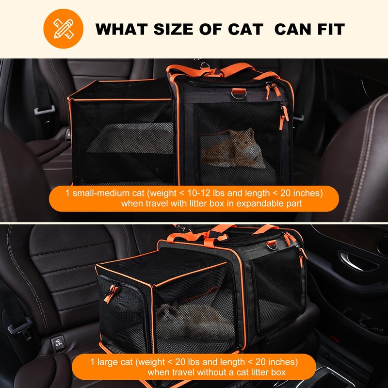 - This carrier is design for 1 small-medium cat under 12 lbs when expandable part hold a cat litter box,or 1 large cat under 20 lbs when cat litter box is used out of carrier(or not used)