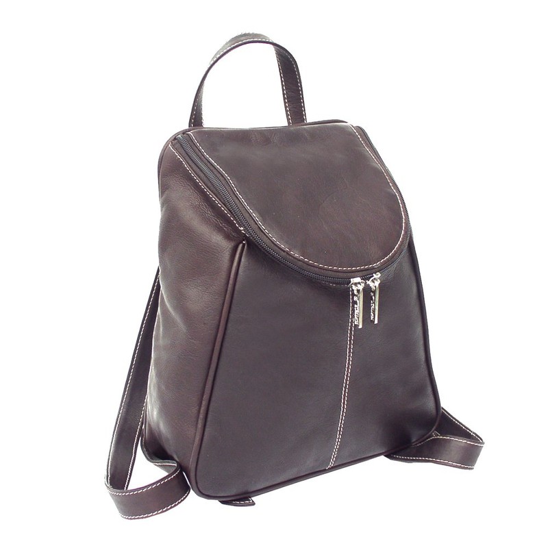 Piel Leather U-Zip Backpack, Chocolate, One Size