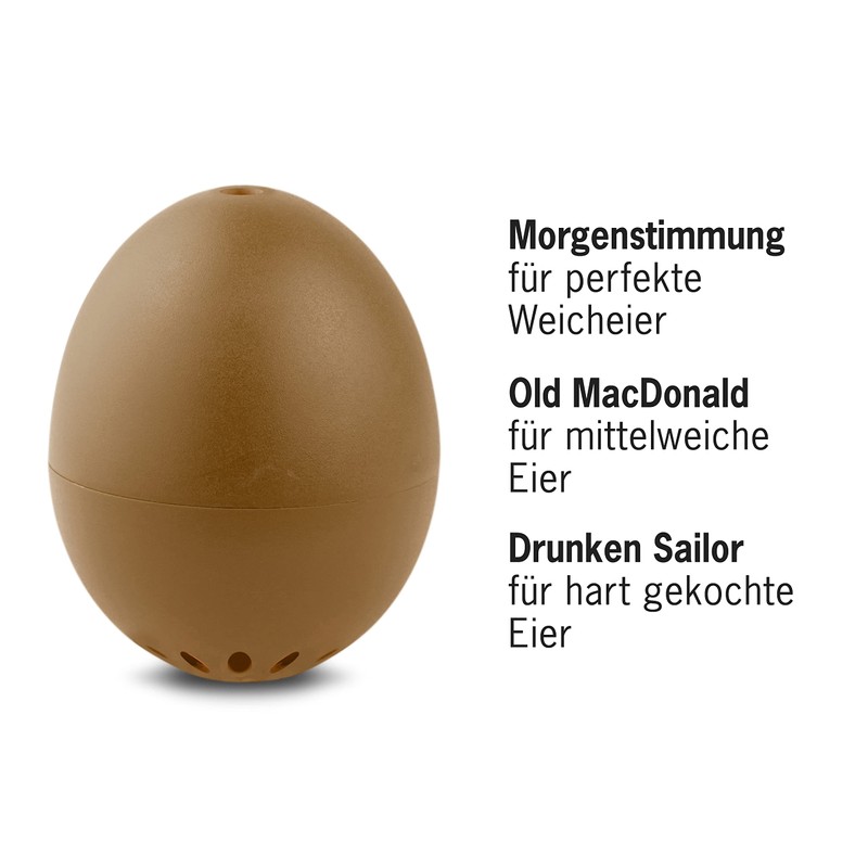 - Three melodies for three degrees of hardness: whether soft, medium soft or hard boiled, the beep egg plays a different melody for each level. PiepEi Classic plays "Morning Mood" for soft-boiled eggs, "Old Macdonald" for the perfect medium-soft egg and "DRUNKEN SAILOR" as soon as the hard-boiled egg is reached.