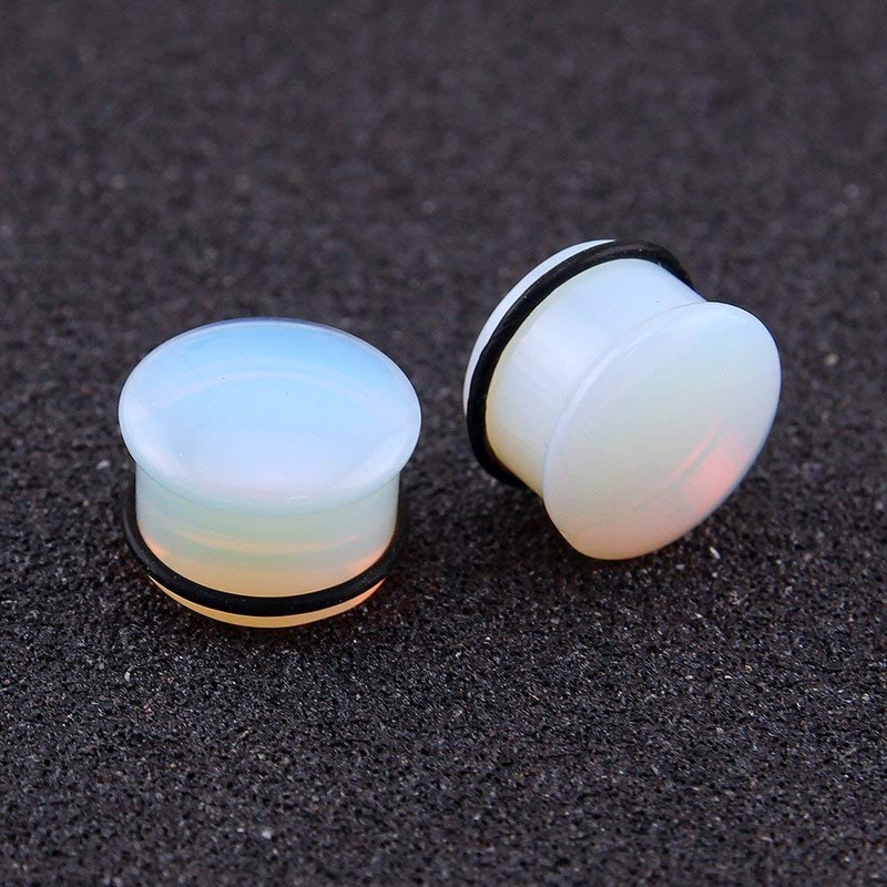 - Style: Single flared opalite stone with silicone o-ring, fastening: silicone o-ring.