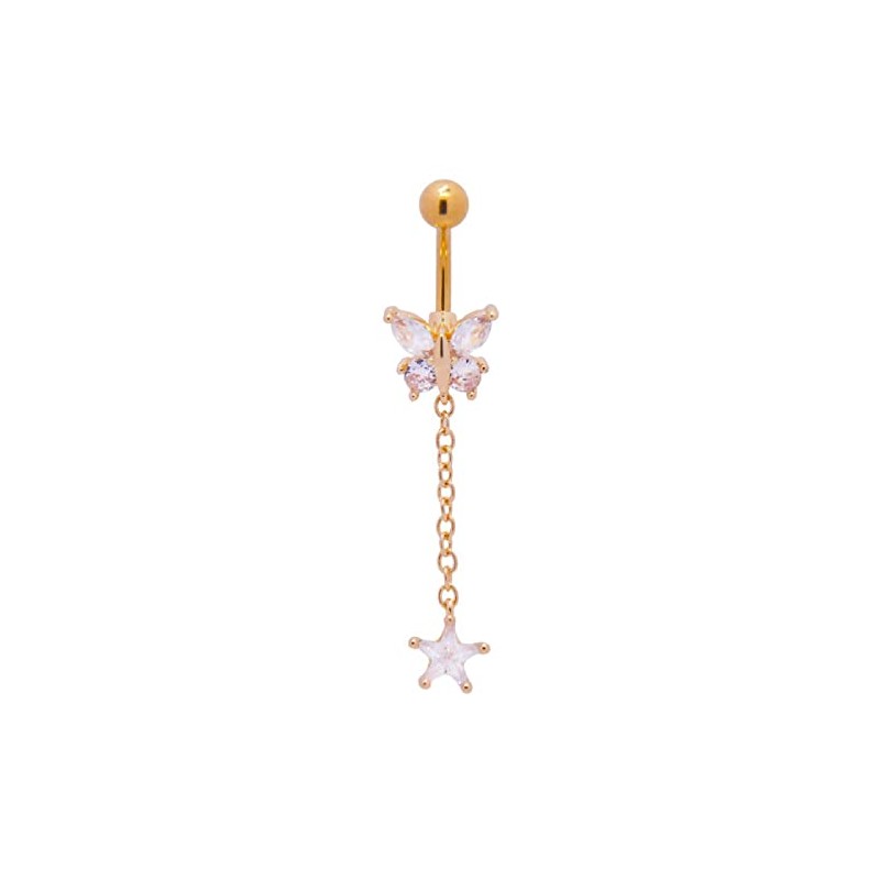 - STYLE: Zircon Crystal Butterfly with Dangling Star Belly Button Ring