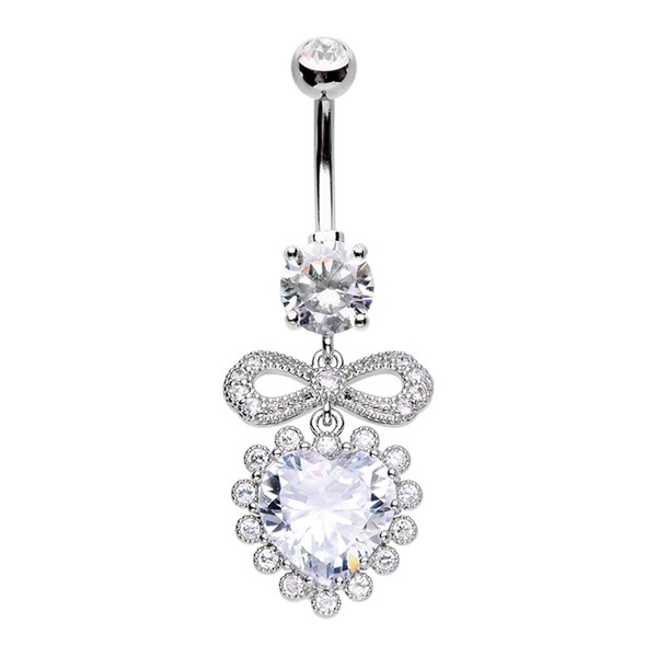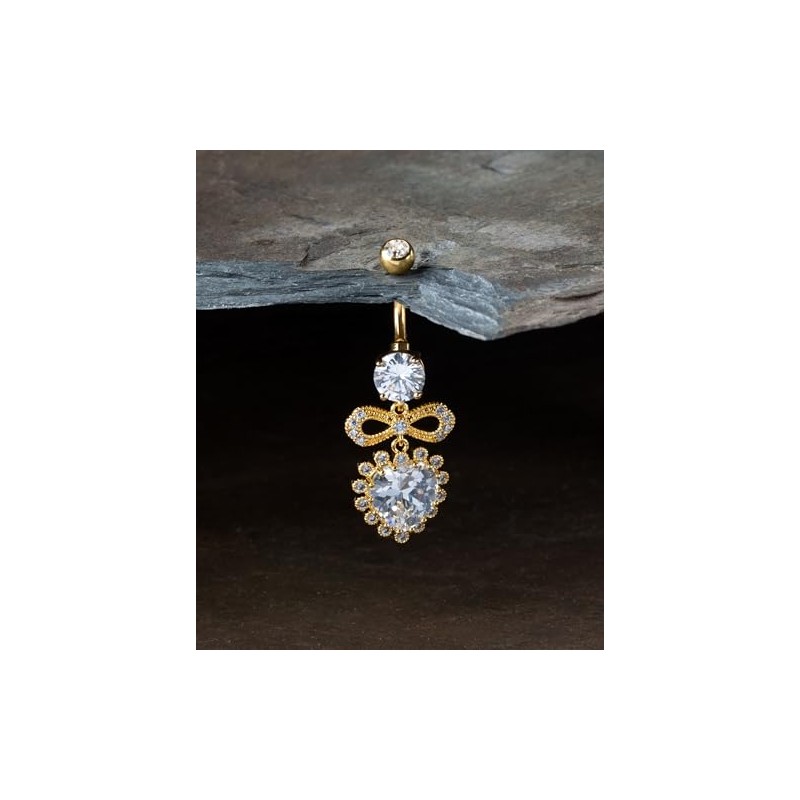 - STYLE: Bow and CZ Crystal Heart Dangling Belly Button Ring