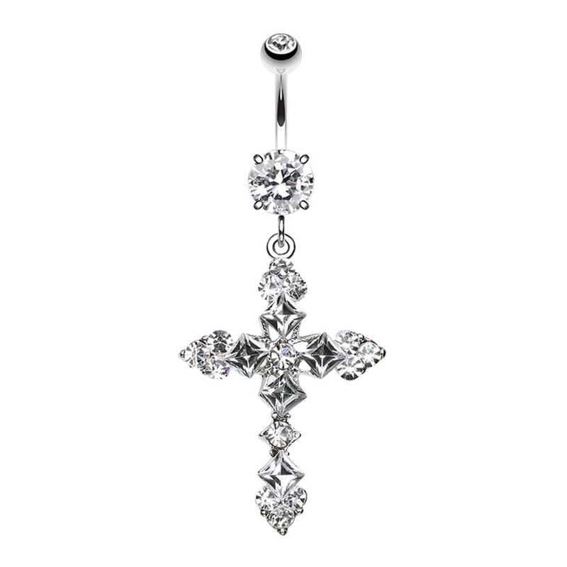 - STYLE: CZ Crystal Cross My Heart Dangling Belly Button Ring