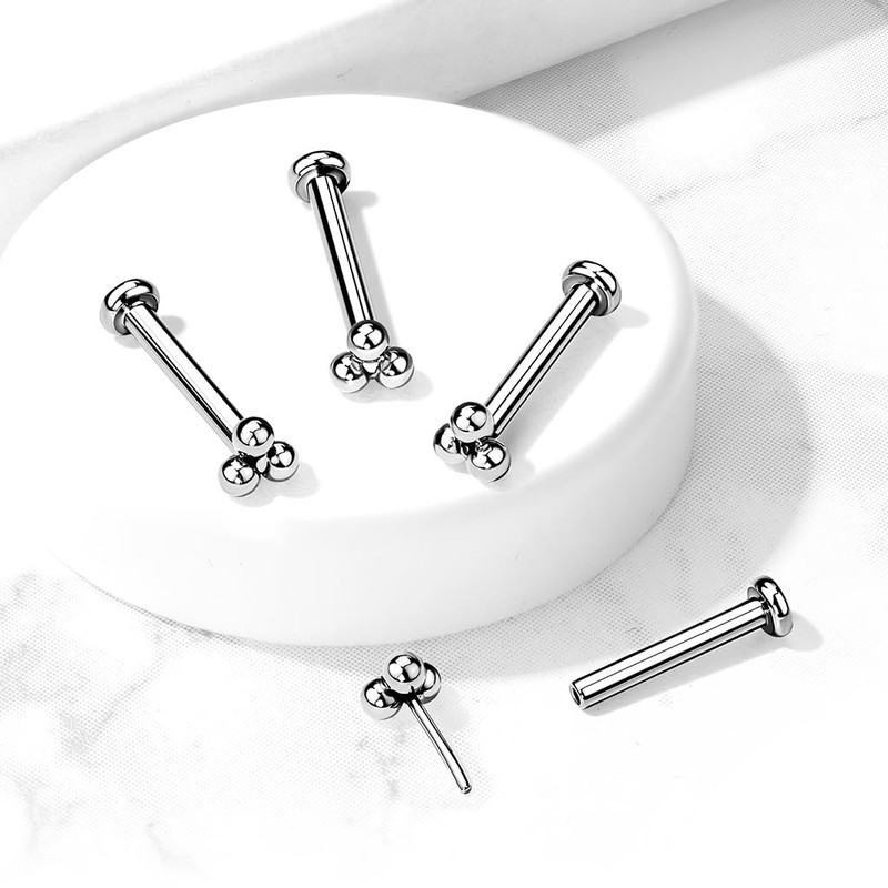 - STYLE: Threadless Push-In Triple Ball Cluster Flat Back Stud