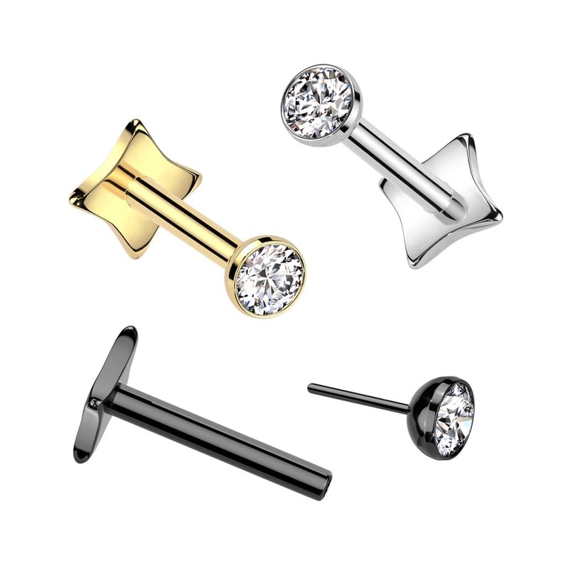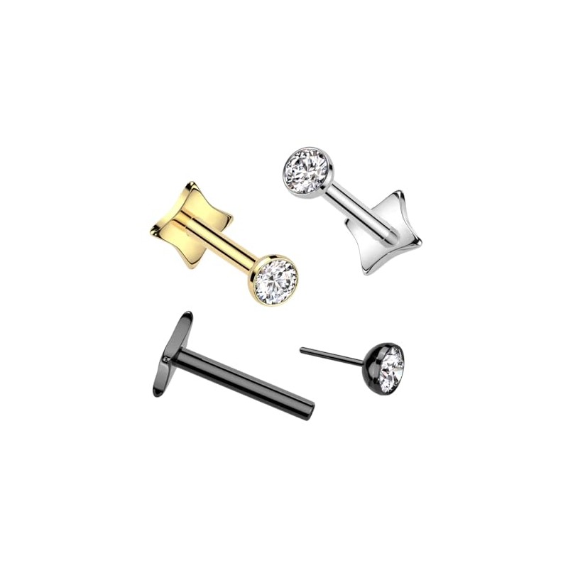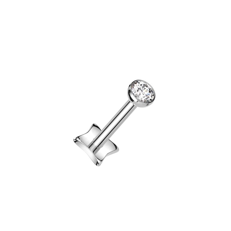 Pierced Owl 18GA ASTM F-136 Implant Grade Titanium Threadless Push-In Bezel Set CZ Crystal Top Diamond Shaped Base Flat Back Stud (Silver Tone)