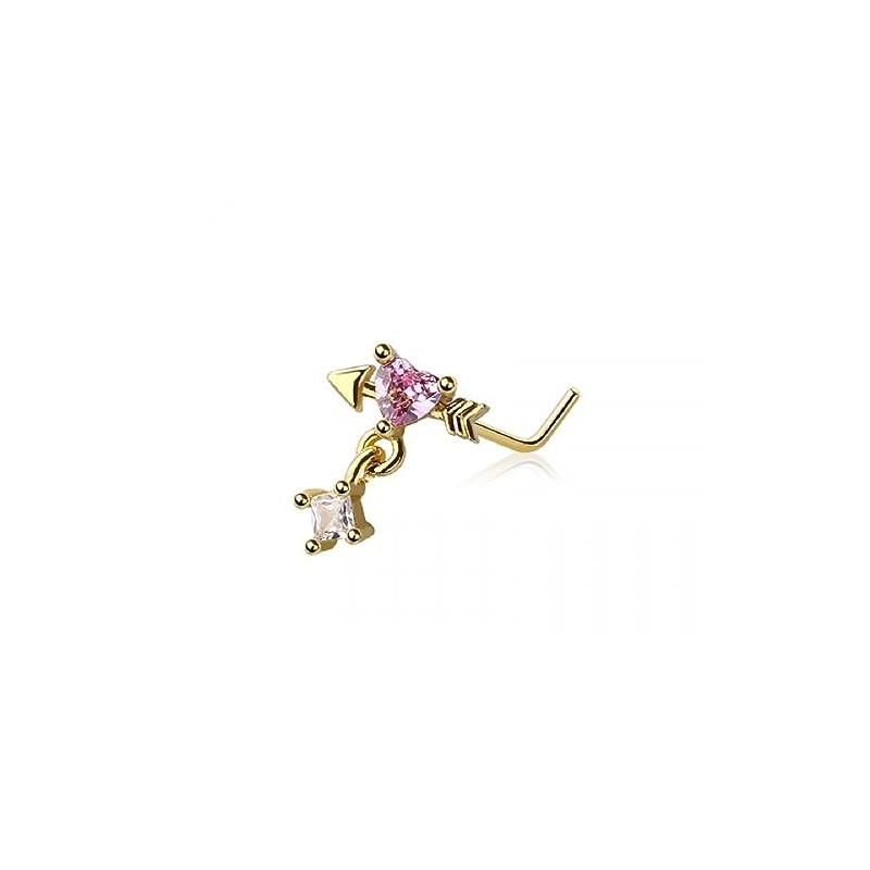 - STYLE: Pink Heart Arrow with Dangling Gem L-Bend Nose Stud