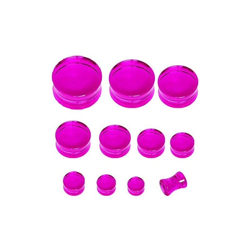 - STYLE: Purple UV Acrylic Transparent Double Flared Saddle Plug Gauges
