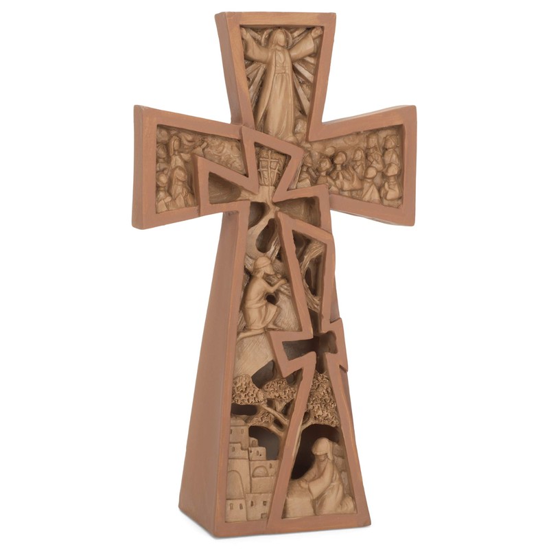 - Beautifully detailed cross includes scenes from the crucifixion and resurrection of Jesus
