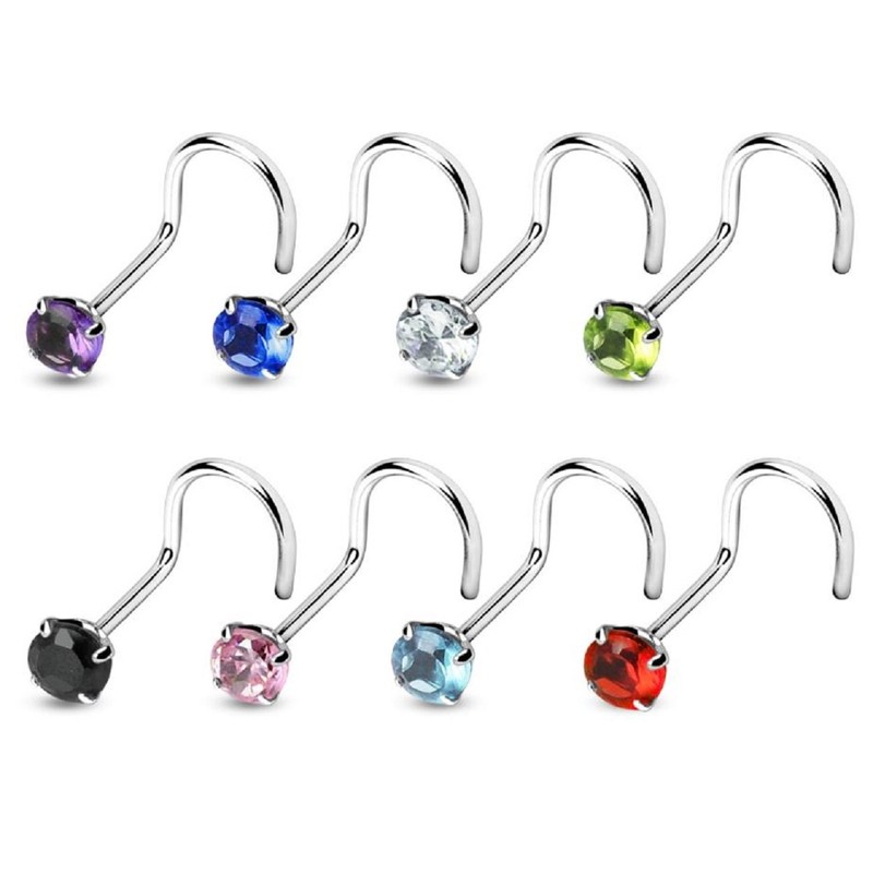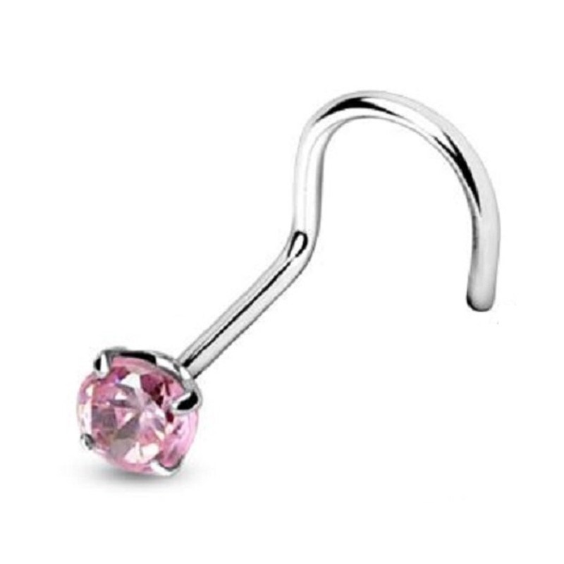 PiercedOff 316L Surgical Steel Nose Screw with Pink CZ Gem - Thickness 18GA (1mm) / Length 6mm / Gem Size 3mm