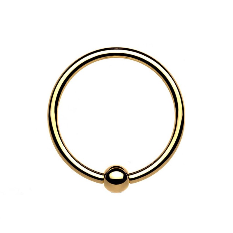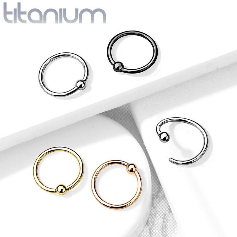 - Upgrade your body jewelry game with something a little more sophisticated with this 20 gauge captive ring with a fixed ball that can be used for a variety of different body piercings. This circular ring is made from solid Grade 23 implant grade titanium and fixed 3mm captive bead. A PVD plating added for the gold, rose gold tone and black. This circular captive ring is ideal for a variety of different cartilage ear piercings.