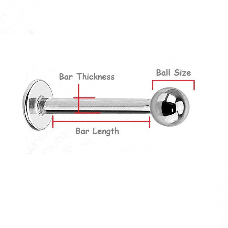 PiercedOff Titanium Labret with Internally Threaded Ball - Thickness 18GA (1mm) / Length 8mm / Ball Size 2mm