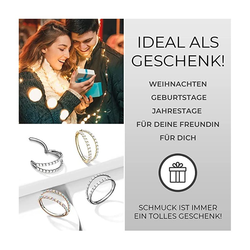 - Versatile, can be used as a helix, conch, nose piercing, belly button ring