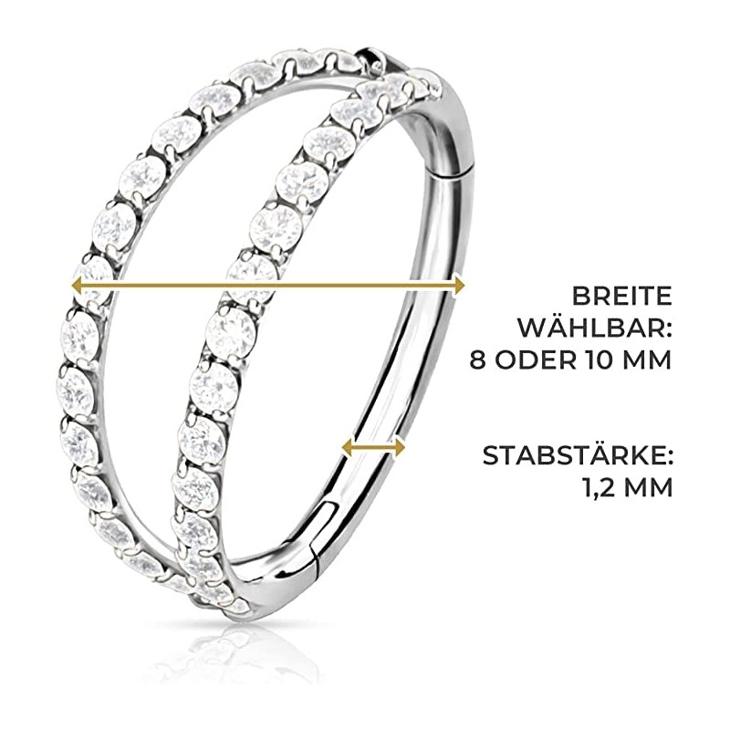 - Box contents: 1 titanium segment ring clicker 8 mm or 10 mm inner diameter, 1.2 mm bar thickness