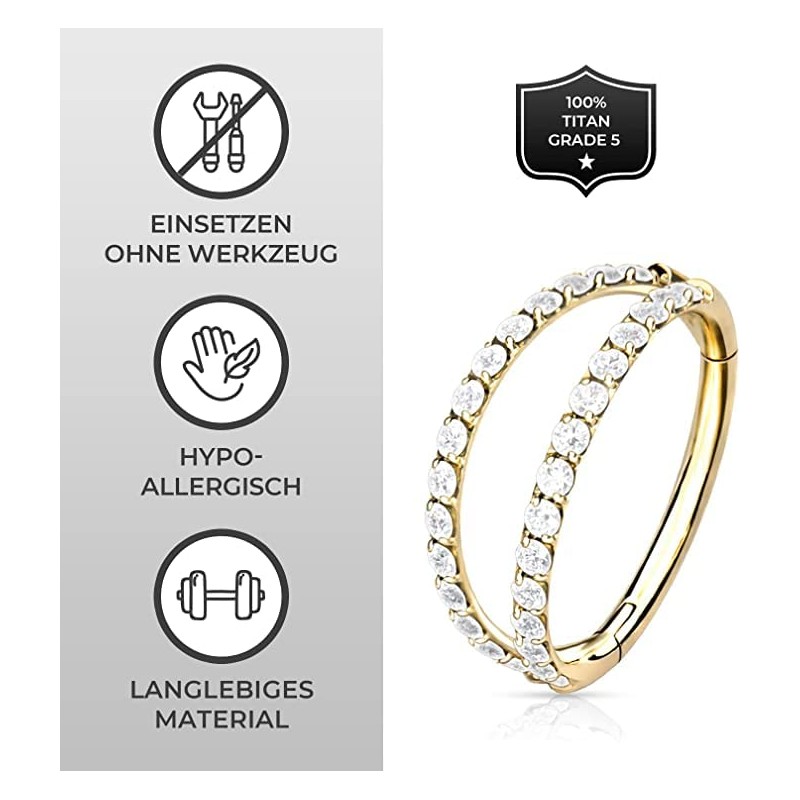 - High-quality segment ring clicker made of titanium, remains beautiful even after prolonged wear