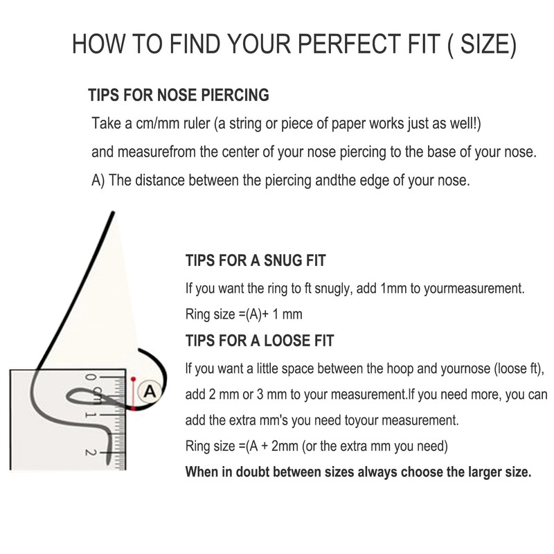 • 2pcs Set Sold. It can be used as nose rings hoop, septum jewelry - septum ring / septum clicker, helix earrings, cartilage earring, rook earrings, lobe earrings hoop and lip rings. Please check the size chart to choose your gauge and diameter hoop for your nose piercing or ear piercing needs.