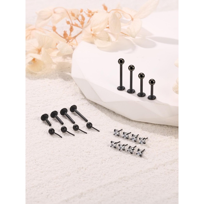 - Box contents: 4 pairs (8 pieces) ball labret studs + 8 replacement zirconia.