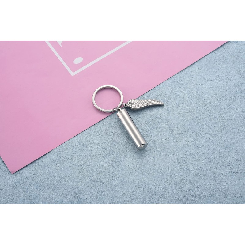 PiercingJak Cremation Jewelry Urn Keychain for Ashes Stainless Steel Angel Wing Keepsake Urn Key Chain Cylinder Memorial Cremation Keyring Jewelry for Human Pet Ashes