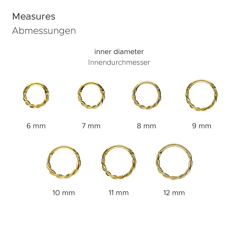 - Box contents: 1 segment ring clicker double twisted, colour: black, size: 12 mm inner diameter, 1.2 mm bar thickness