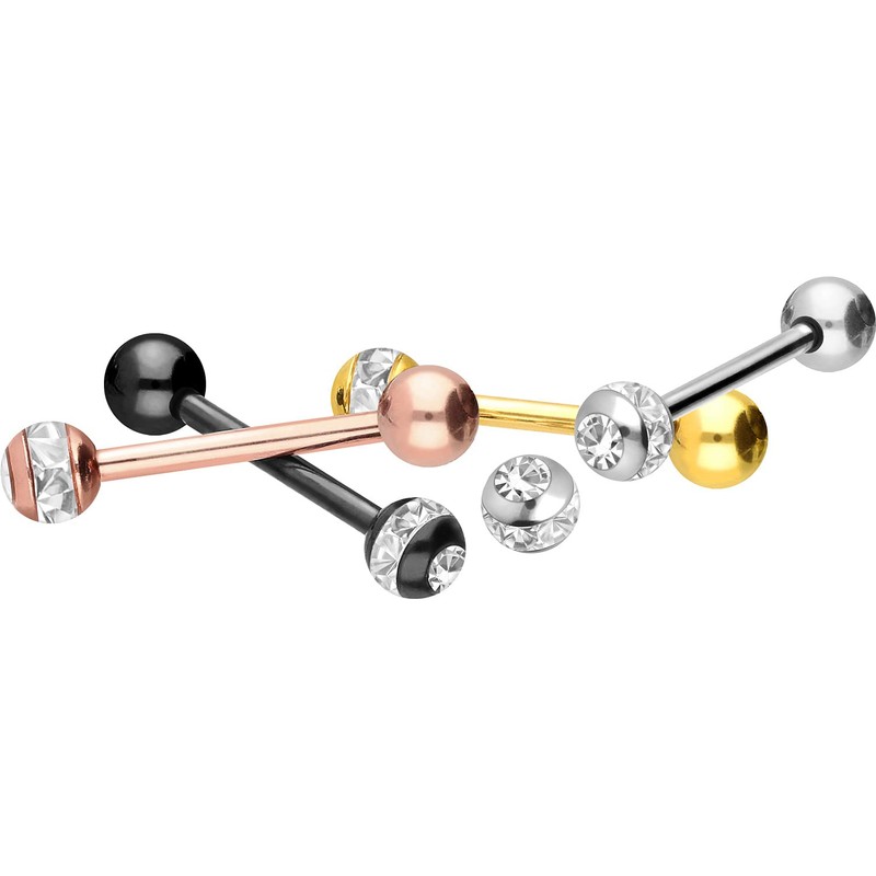 PIERCINGLINE Surgical Steel Barbell | Epoxy Ring Ball + Crystal | Piercing Bar Chest Tongue | Choice of Colours and Sizes, 316L surgical steel / epoxy resin