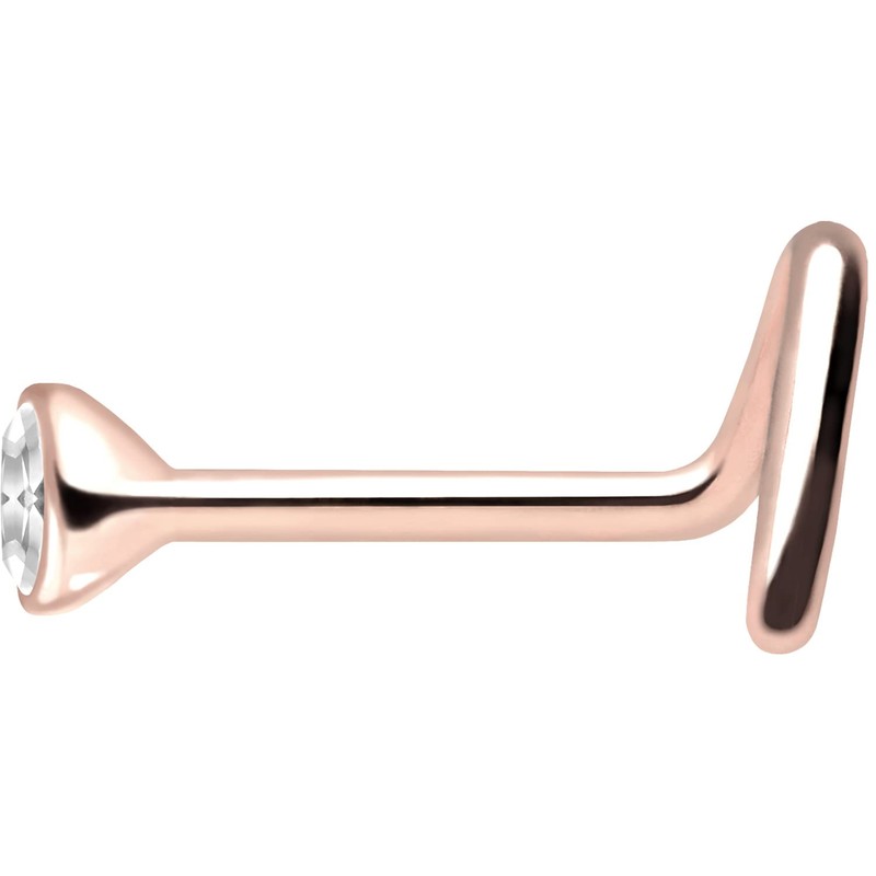 The nose stud is made of high-quality surgical steel 316Land can be finished with a colourful PVD coating. This piercing has a bar thickness of 0.8 mm or 1 mm and is finished with a 2.5 mm crystal. This provides the product with a natural luxurious sheen. The spiral ensures the piercing sits more securely in your nose. The material used (surgical steel 316L) is characterised by its special properties such as colour fastness and material resistance.